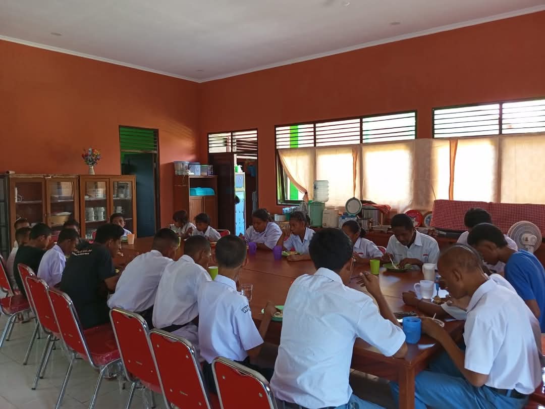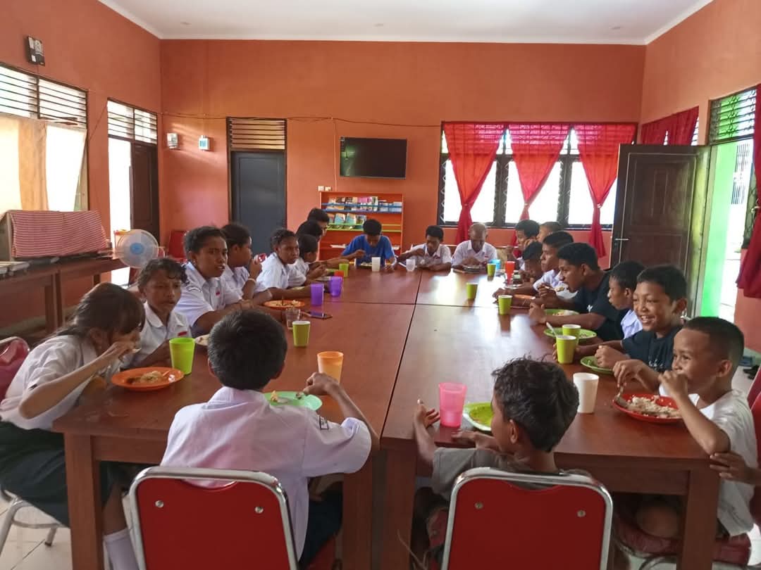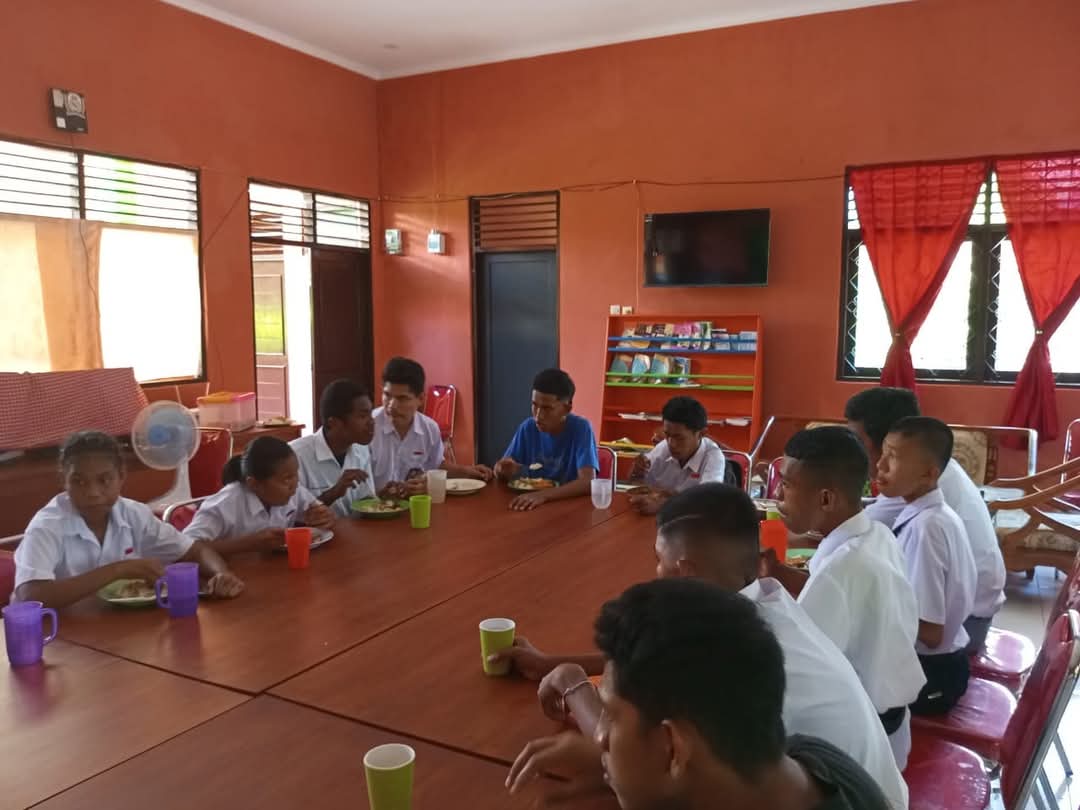 Kegiatan Makan Siang di Asrama SLB Negeri Kota Ambon
