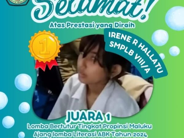 Selamat dan sukses atas prestasi ananda IRENE R HALLATU siswa kelas VIII/A juara 1 LOMBA BERTUTUR TINGKAT PROPINSI dalam Ajang..